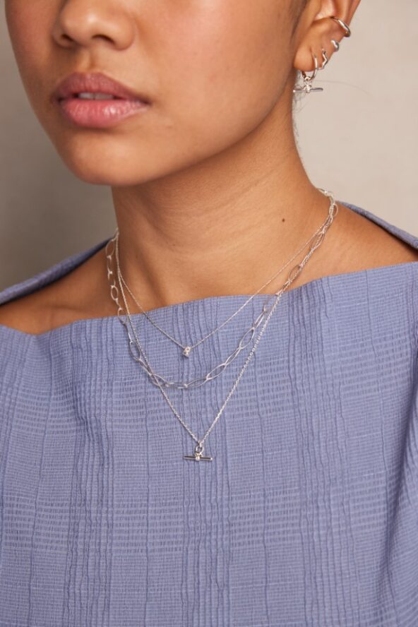 - Finally, we like to add our Dainty T-Bar Knot Necklace - Silver (orelia.co.uk) to add some length to the look.