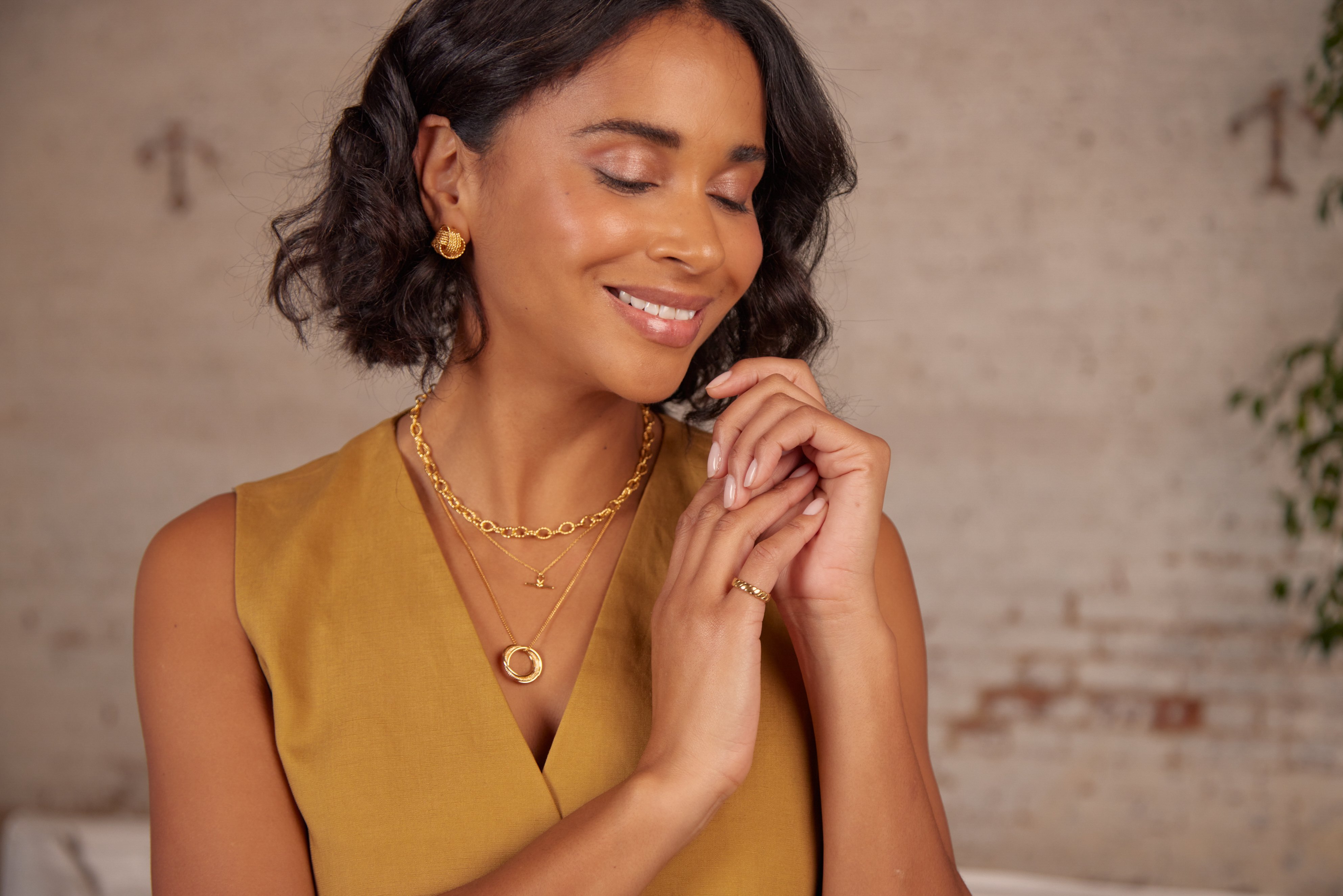 - Finish off the look with our classic Textured Interlocking Open Circle Necklace