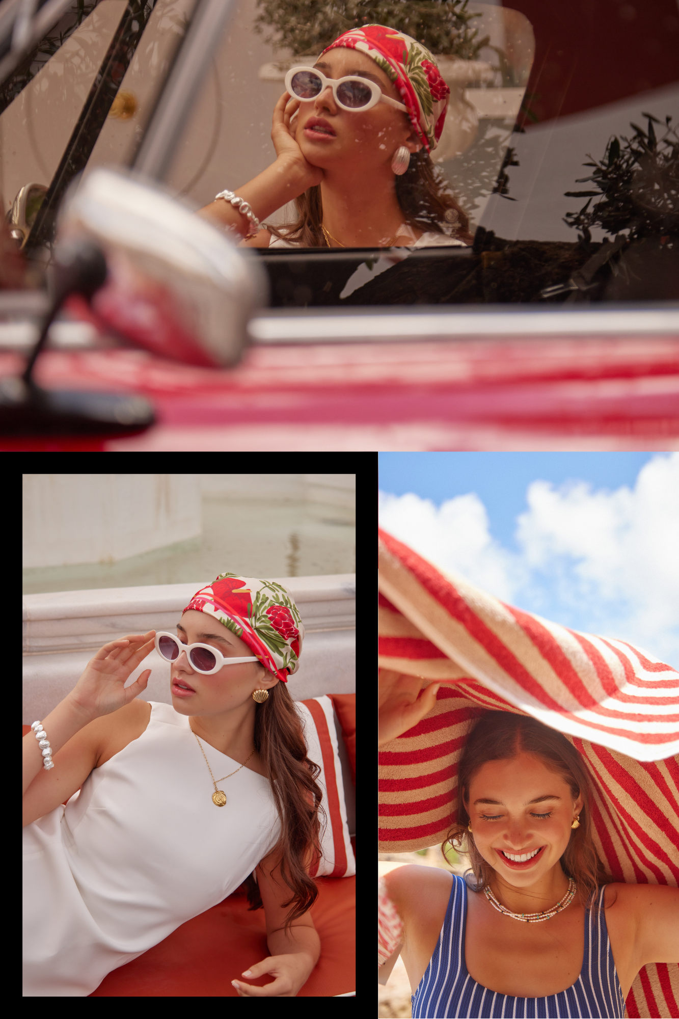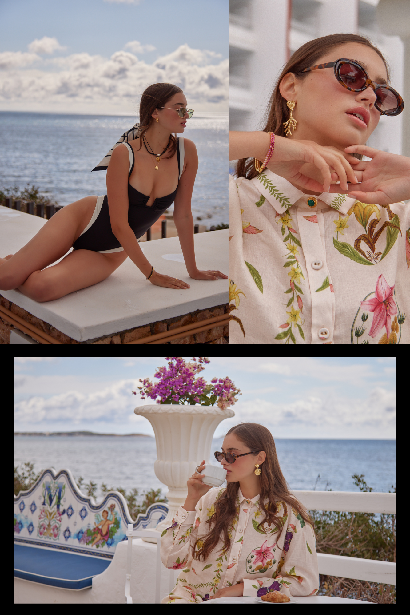 "The High Summer shoot was inspired by our collection theme Capri and the nostalgia of long Italian summers. We headed to Hotel Mongibello in Ibiza in search of la dolce vita (the sweet life). It was the perfect location to capture the glamour of retro Italy, mixing luxury vintage styling with playful colours and our eclectic summer charms." - Lorna, Junior Buyer