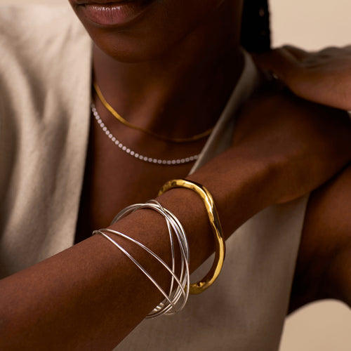 Shop our collection of gold and silver plated wristwear. Stack up your bangles and bracelets for an on trend look, or for subtle everyday style adorn your wrist with one of our statement pieces.