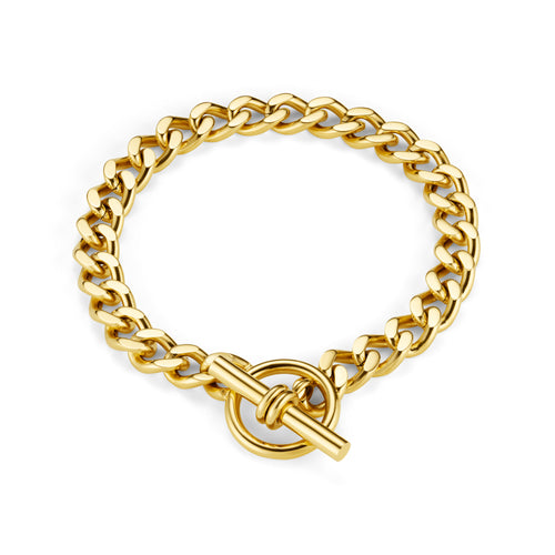 LUXE Flat Curb T-Bar Bracelet - Gold