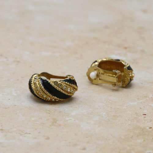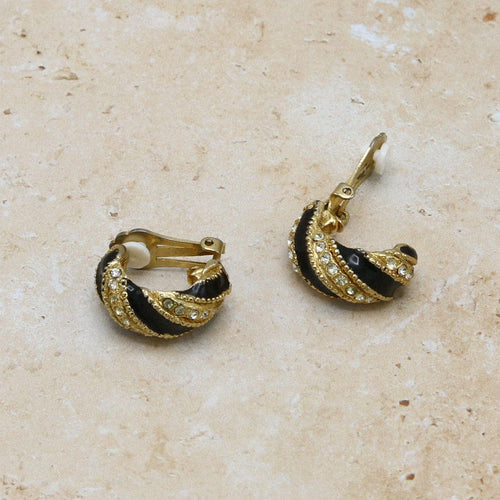 Vintage Statement Enamel & Pave Twist Clip-On Earrings