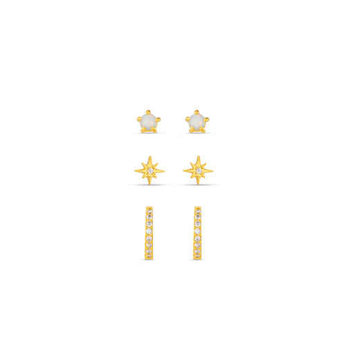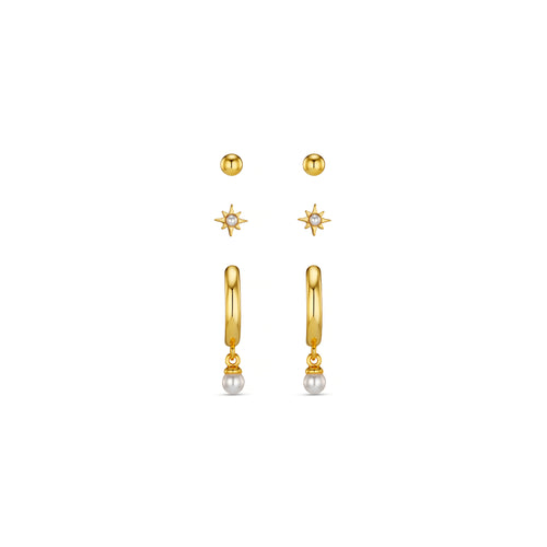 Pearl Drop Hoop & Starburst Pack Ear Stacking Set
