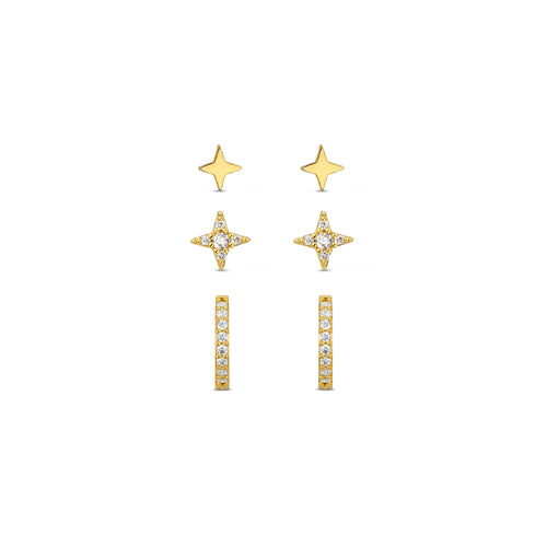 Mixed Celestial Stud & Pave Micro Hoop Earring Pack