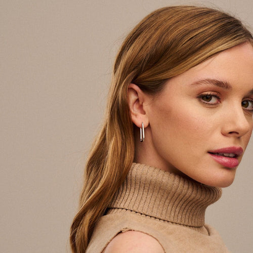 Squoval Hoop Earrings - Silver