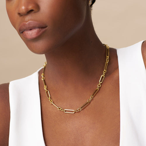 Chunky Flat Curb & Solid Clasp Bracelet - Gold