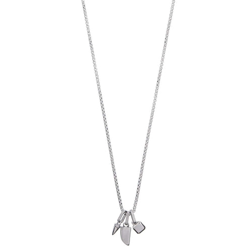 Rectangle Bar & Crystal Pendant Necklace - Gold