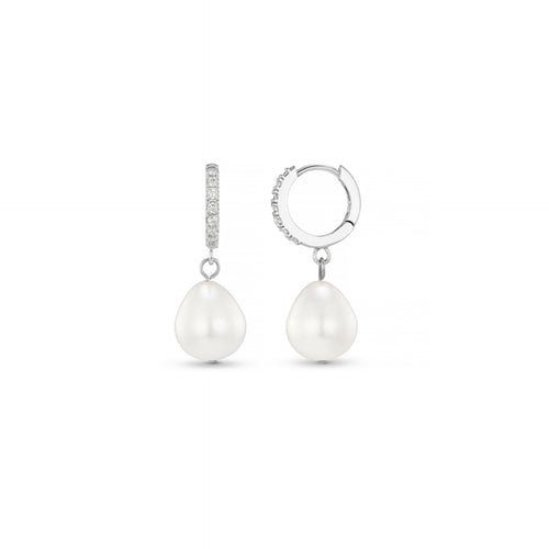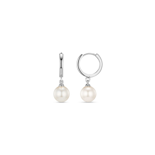 Pearl Drop Pavé Huggie Hoop Earrings - Silver