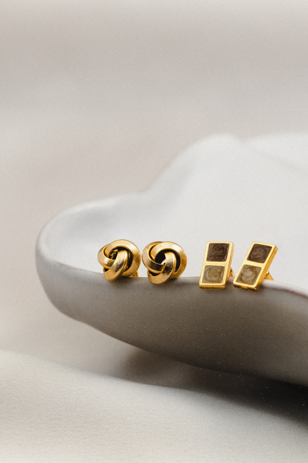 Vintage Mixed-Plate Interlocked Dome Clip-On Earrings