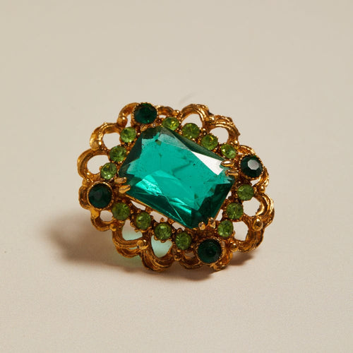 Vintage Green Glass Stone Brooch