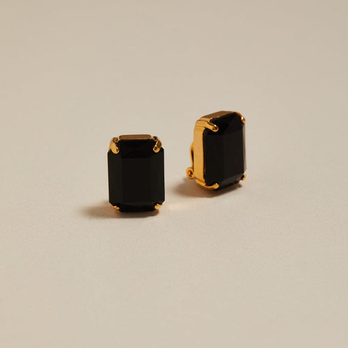 Vintage Square Onyx Clip-On Earrings