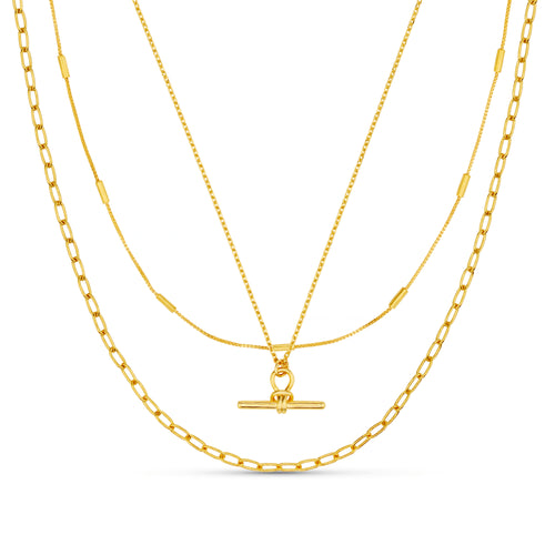 Shop t-bar necklaces, t-bar bracelets and t-bar earrings, in 18k gold or 925 silver plating. Always in style, our t-bar jewellery is a staple for every look. Discover waterproof t-bar jewellery, as well as beautifully designed pieces to elevate your look.