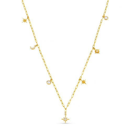 Statement Molten Moon & Crystal Charm Lariat Necklace