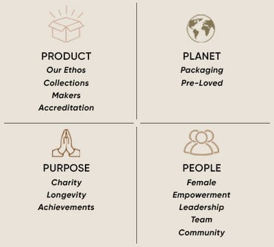 We take responsibility for our brand to have minimal impact on the environment, a positive impact on our community and to be supportive of our team both at home and our makers overseas. Sustainability to us is about taking responsibility, making steps toward the end goal, which is creating a brand that is a positive force, doing more good than harm. We continue to make progress, it’s an ongoing journey which we have built into different areas of our business.