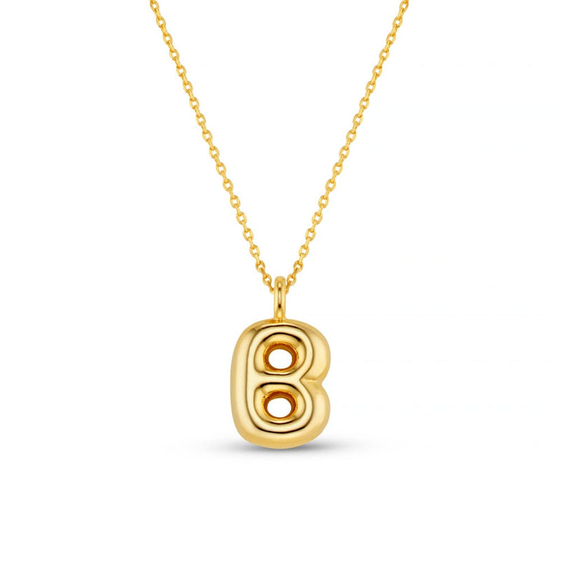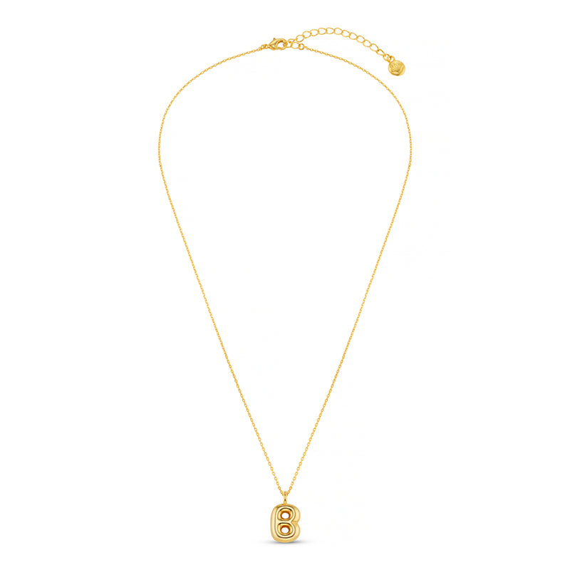 The chunky gold, bubble 'B' initial suspends from a classic chain, creating a minimalist piece that’s perfect for everyday wear or layering with other favourites.