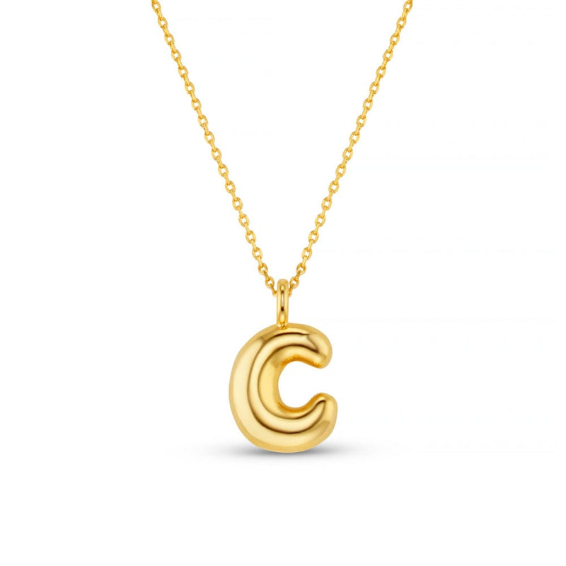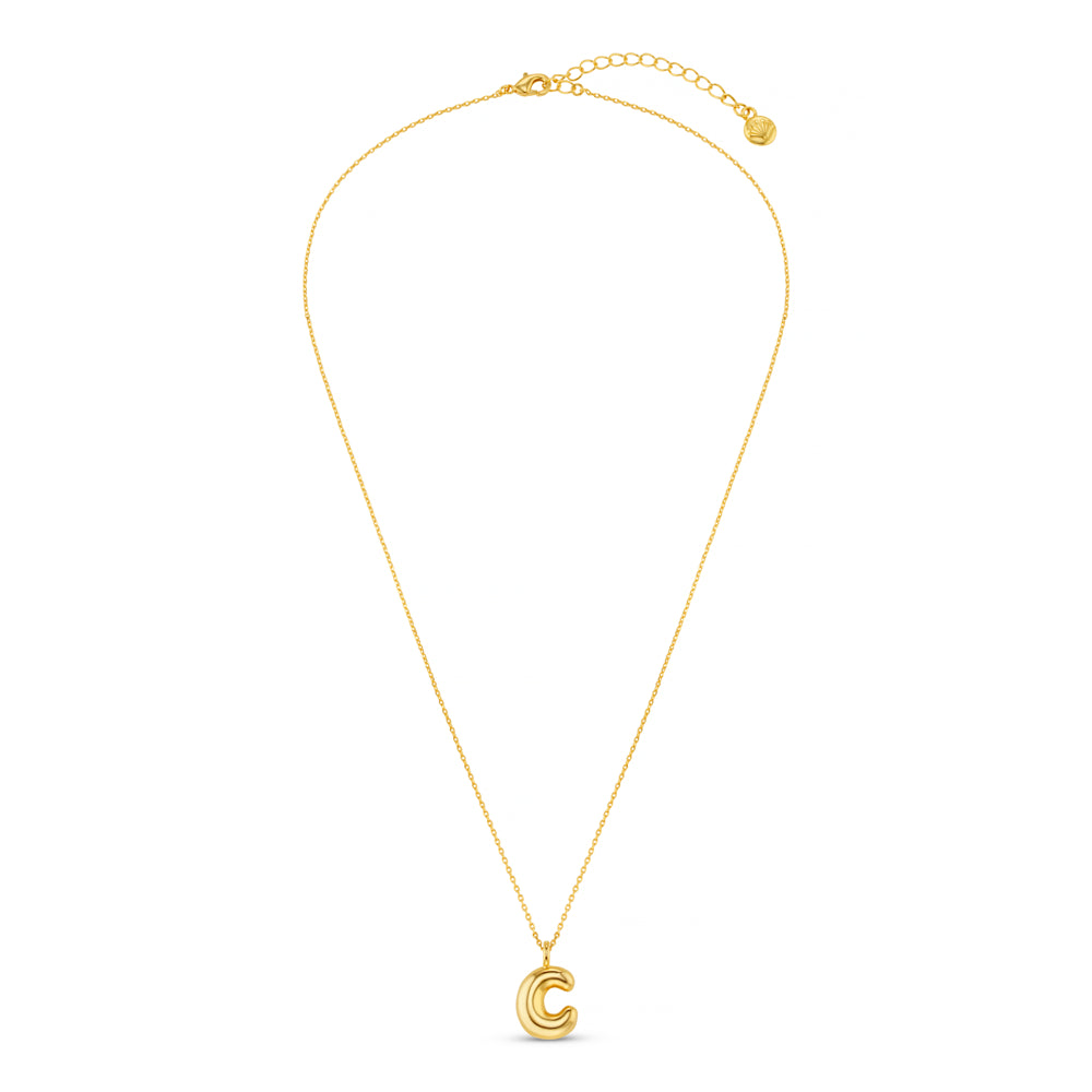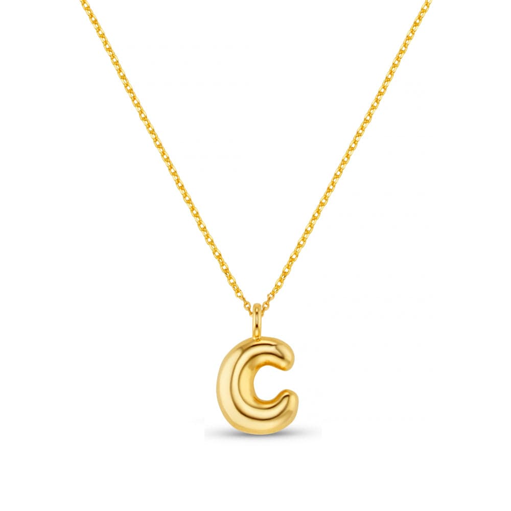 The chunky gold, bubble 'C' initial suspends from a classic chain, creating a minimalist piece that’s perfect for everyday wear or layering with other favourites.
