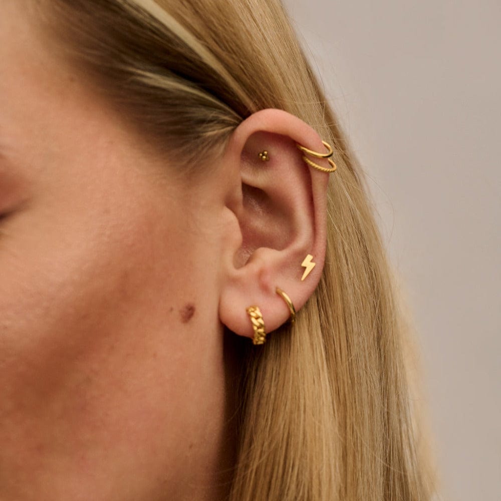 This small gold hoop has an easy to use click clasp and is suitable for daith, helix, tragus and lobe piercings.