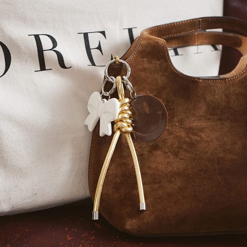 Clip onto a neutral tote or crossbody bag for an understated, elegant accent, or layer it with other charms in soft tones for a playful, personalised look.