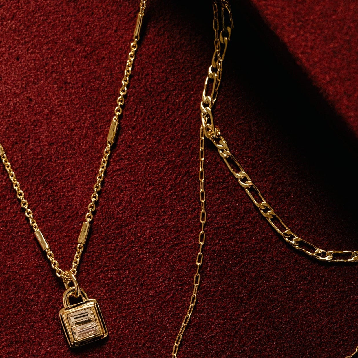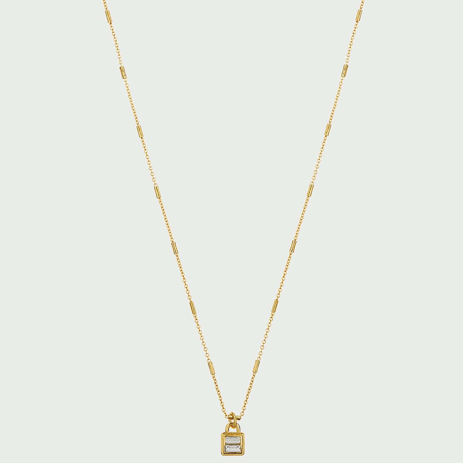 This Crystal Baguette Padlock Necklace is a keepsake charm necklace that'll stay in your collection for years to come.