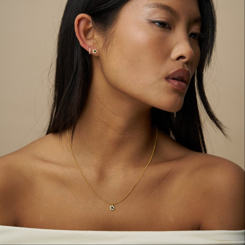 Featuring a delicate flower charm accented with sparkling crystals, the Crystal & Emerald Flower Charm Necklace brings a beautiful balance of brilliance and colour.