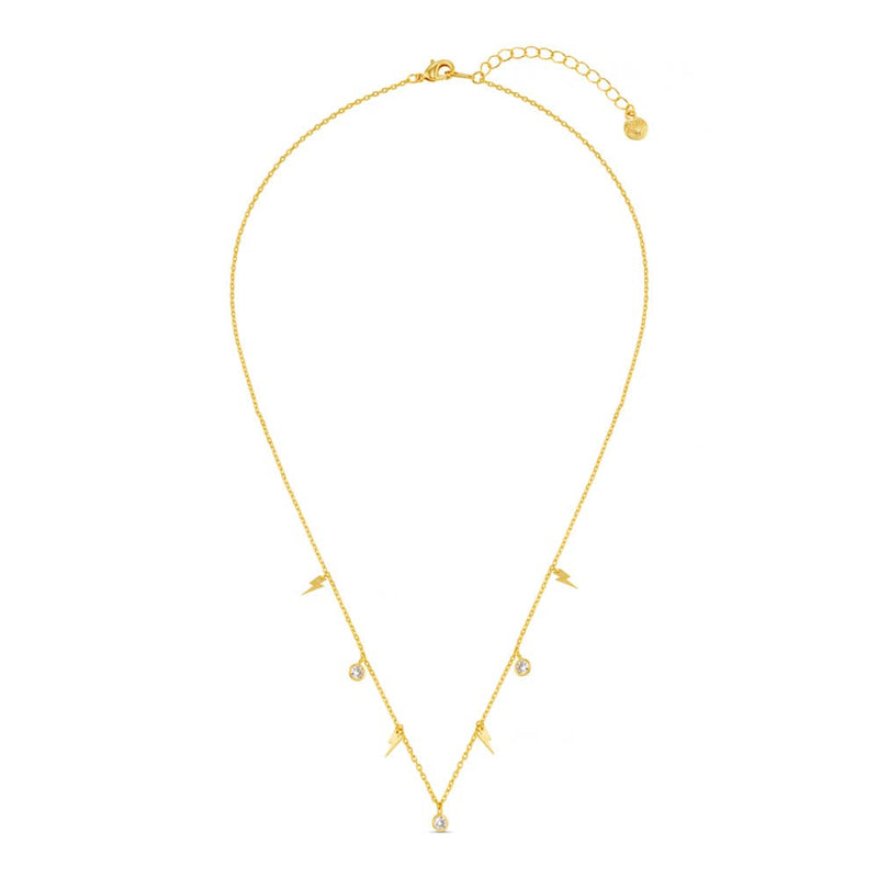 A design full of personality, the Crystal & Lightning Multi Charm Necklace. Multiple charms arranged along a simple chain bring dimension, texture, and offer an easy styling piece for pairing alongside other chains.