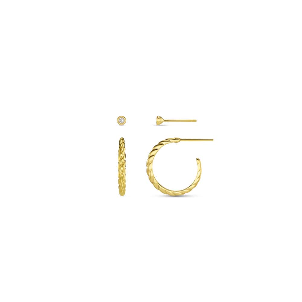 Sleek, twisted, and sparkling, the Crystal & Rope Twist Hoop Ear Stacking Set blends delicate crystal accents with rope-inspired textures, perfect for mixing, matching, and stacking.