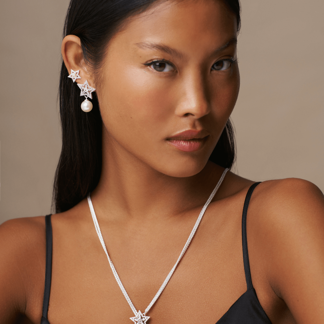 We are stargazing at these Crystal Star & Pearl Drop Earrings.