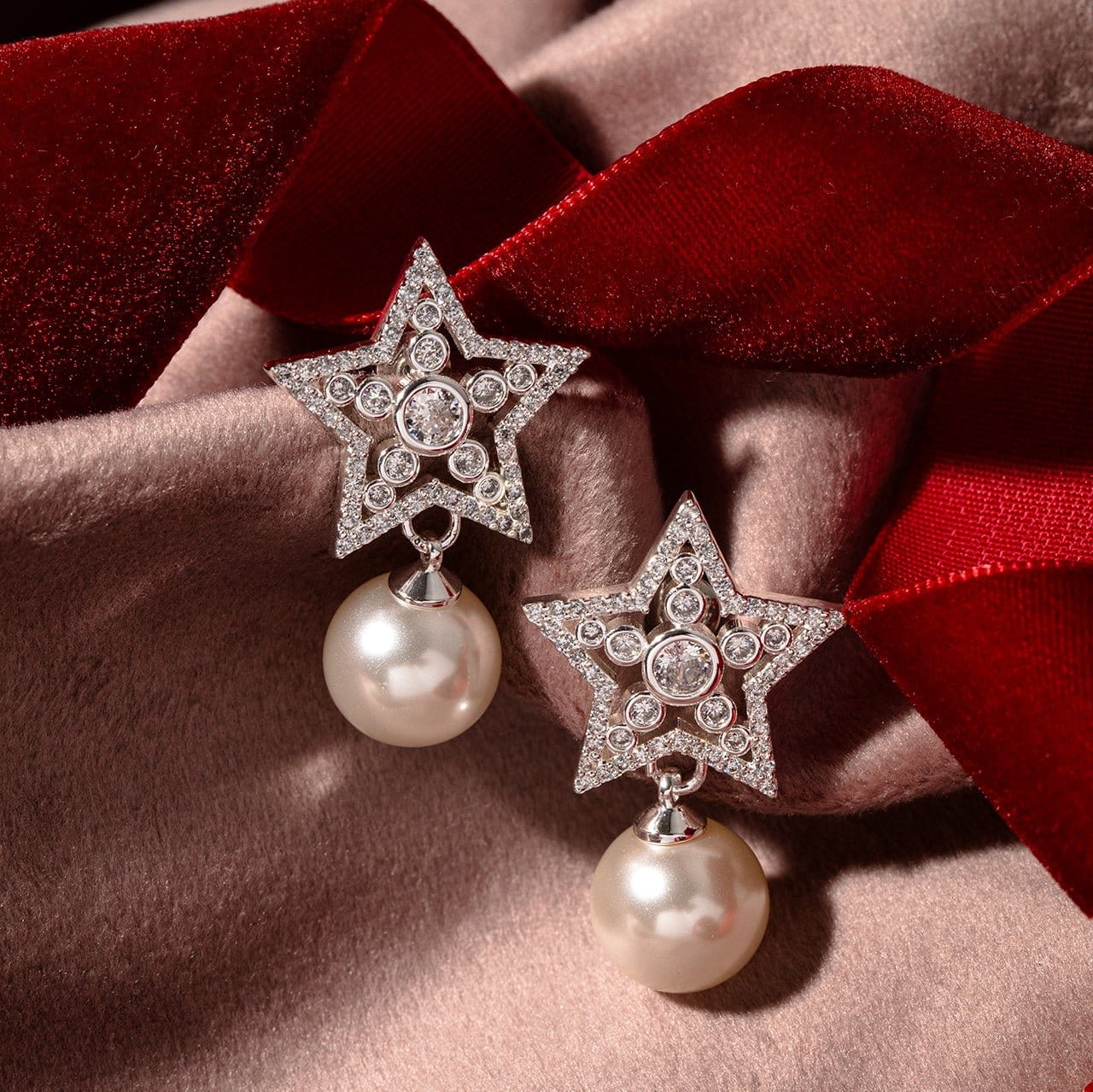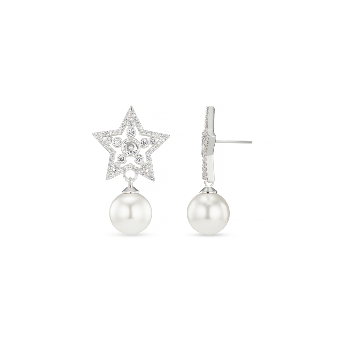 Crystal Star & Pearl Drop Earrings