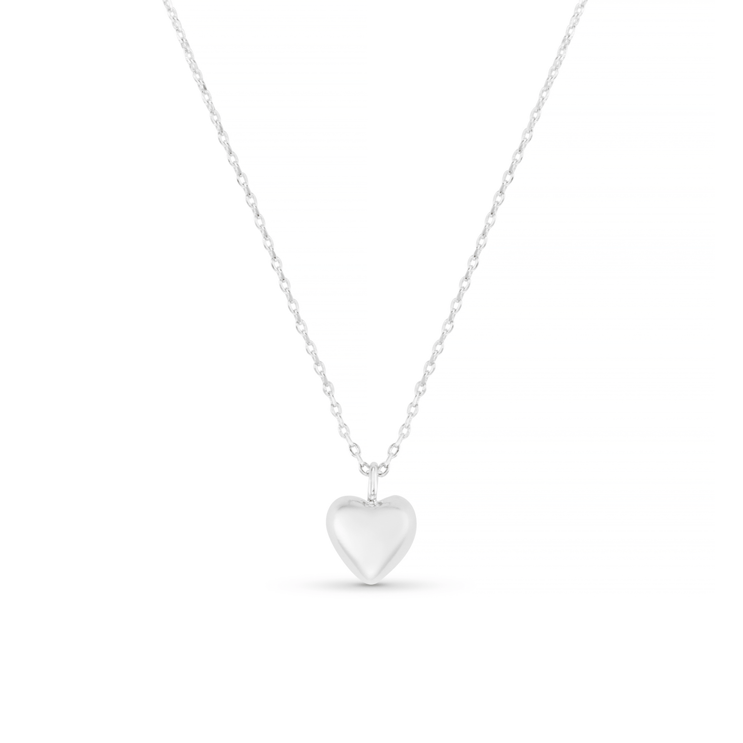 The Domed Heart Charm Short Necklace in silver features a beautiful polished heart-shaped charm with a sleek, domed design for a timeless look.