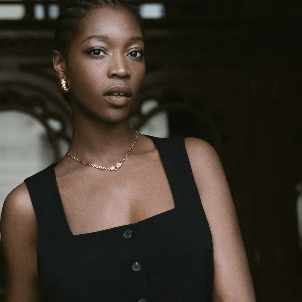 - Composition: 100% Recycled Brass, 18k Gold Plating, Cubic Zirconia