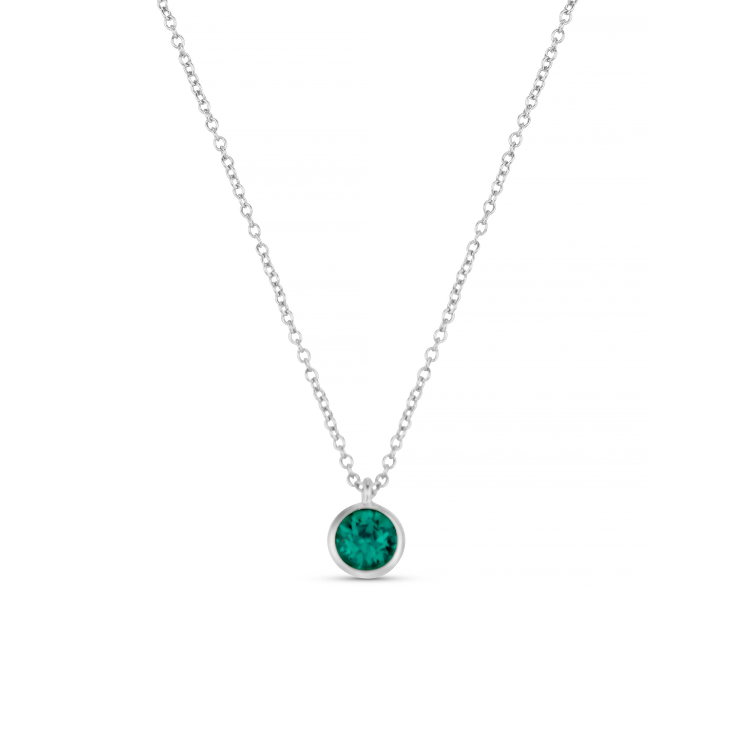 Featuring a beautiful green emerald Swarovski® crystal on the end of our signature short ditsy silver chain necklace.