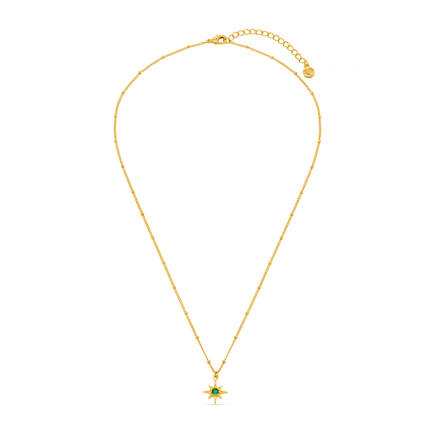 This Emerald Star Charm Necklace is a combo of our two favourite trends, emeralds & starburst shapes.
