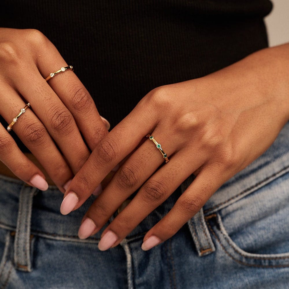 The Emerald Stationed Crystal Ring in Gold is perfect for throwing on on a daily basis.