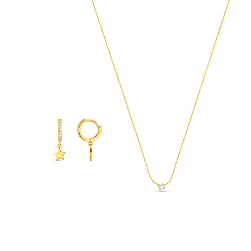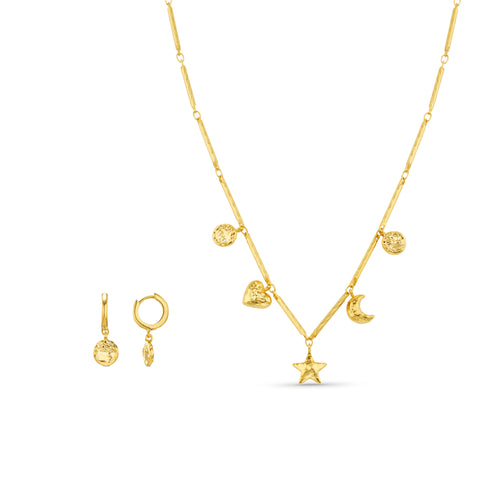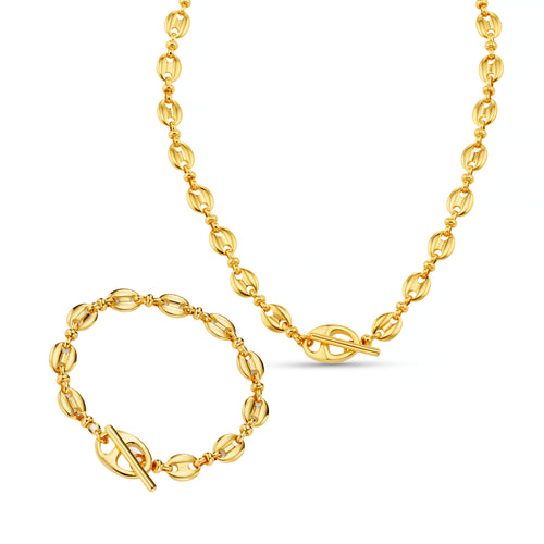 T-Bar Drop Chain & Polished Tapered Hoop Jewellery Set
