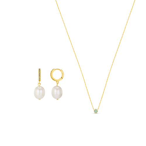 Semi-Precious Green Jade & Satellite Chain Jewellery Set