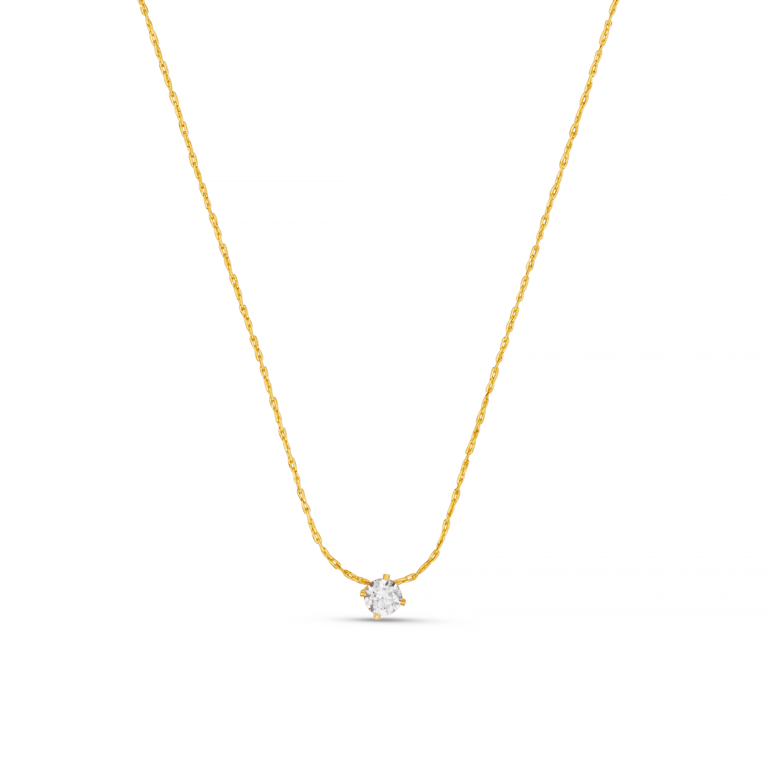 This Fine Crystal Collar Necklace is the perfect accessory to add a hint of sparkle to any outfit. Featuring a fine gold chain holding a micro crystal charm.
