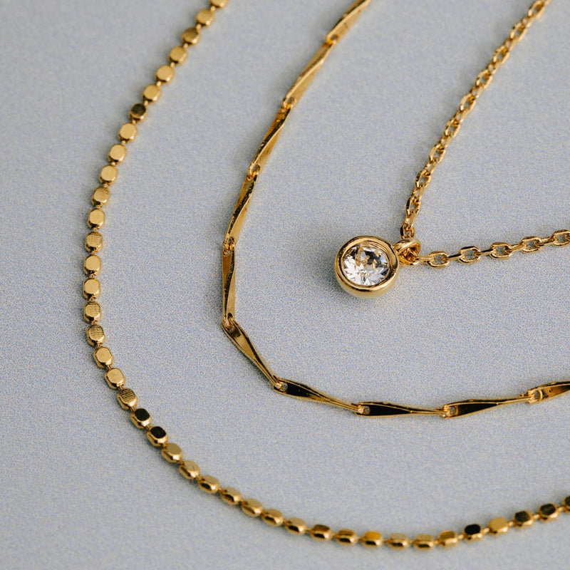 Three sperate chains that can be worn together or used solo to create a new combination.