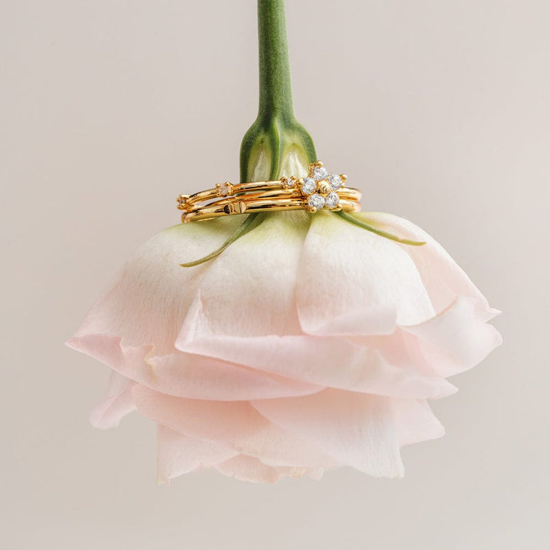 Fine Crystal & Flower Ring Stacking Set