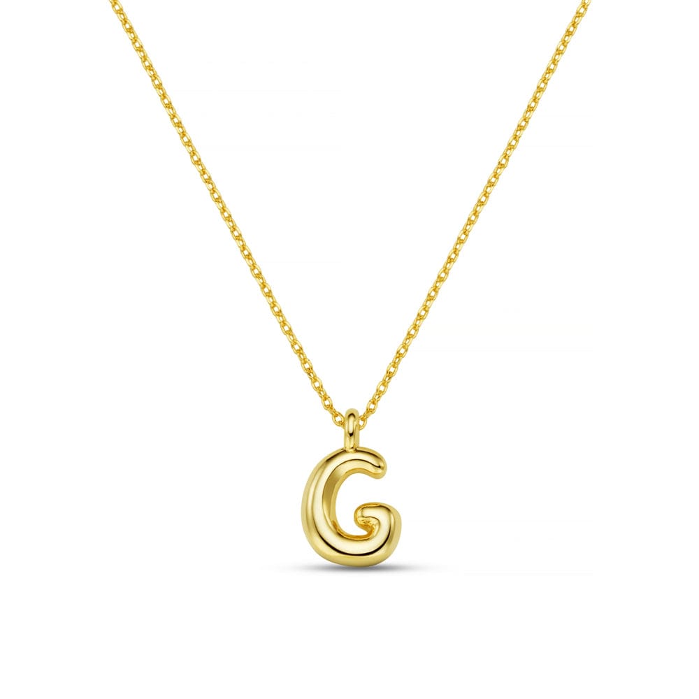 The chunky gold, bubble 'G' initial suspends from a classic chain, creating a minimalist piece that’s perfect for everyday wear or layering with other favourites.