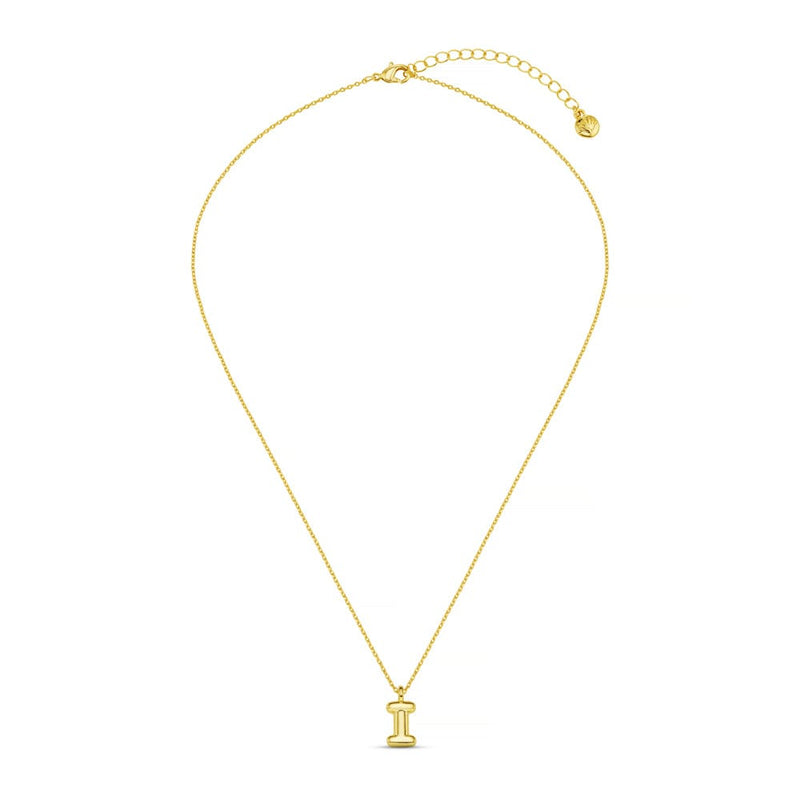 The chunky gold, bubble 'I' initial suspends from a classic chain, creating a minimalist piece that’s perfect for everyday wear or layering with other favourites.