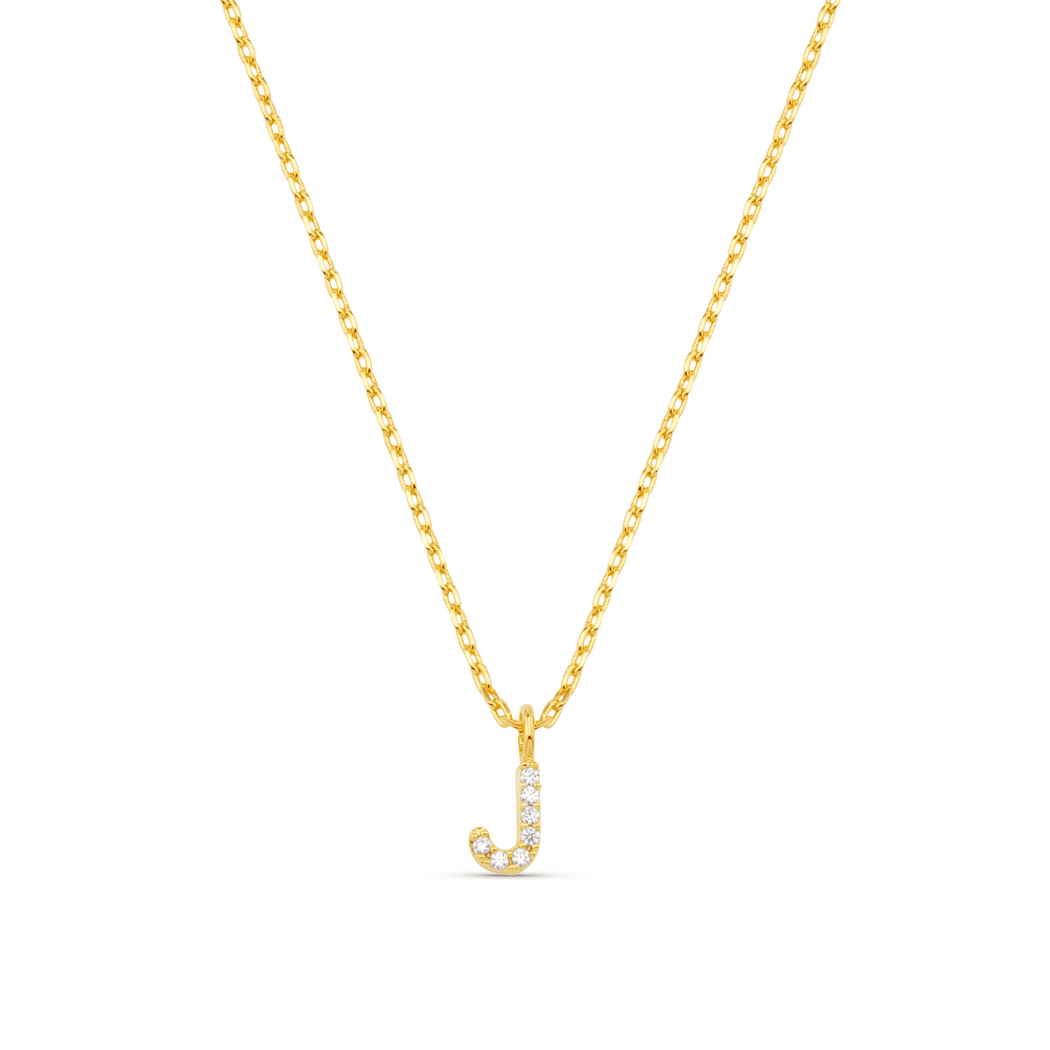 The perfect personalised gift, the gold J Pave Initial Charm Necklace.
