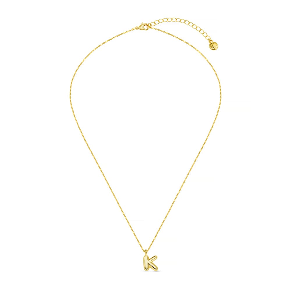 The chunky gold, bubble 'K' initial suspends from a classic chain, creating a minimalist piece that’s perfect for everyday wear or layering with other favourites.