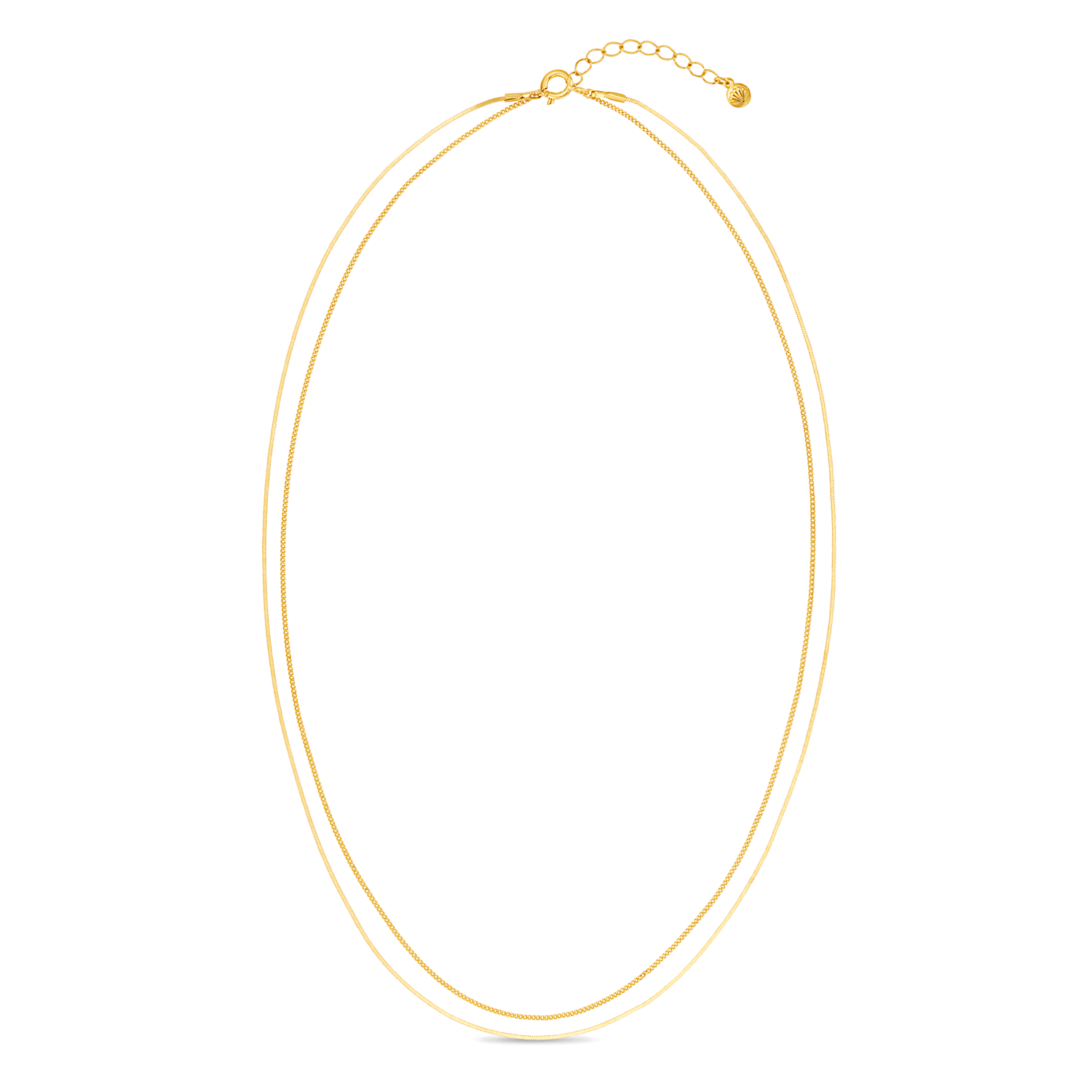 This LUXE Fine Chain 2-Row Necklace gives you the stacked look, and will elevate whatever you pair with it. Featuring a dainty round chain alongside a classic flat snake necklace.