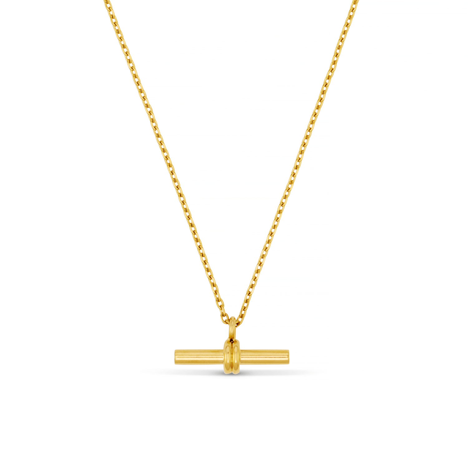 A classic T-bar design, with an elevated luxe finish. The LUXE Linear T-Bar Drop Necklace in Gold is perfect for every day, and will be treasured for years to come. Featuring a simple chain, holding t-bar charm.