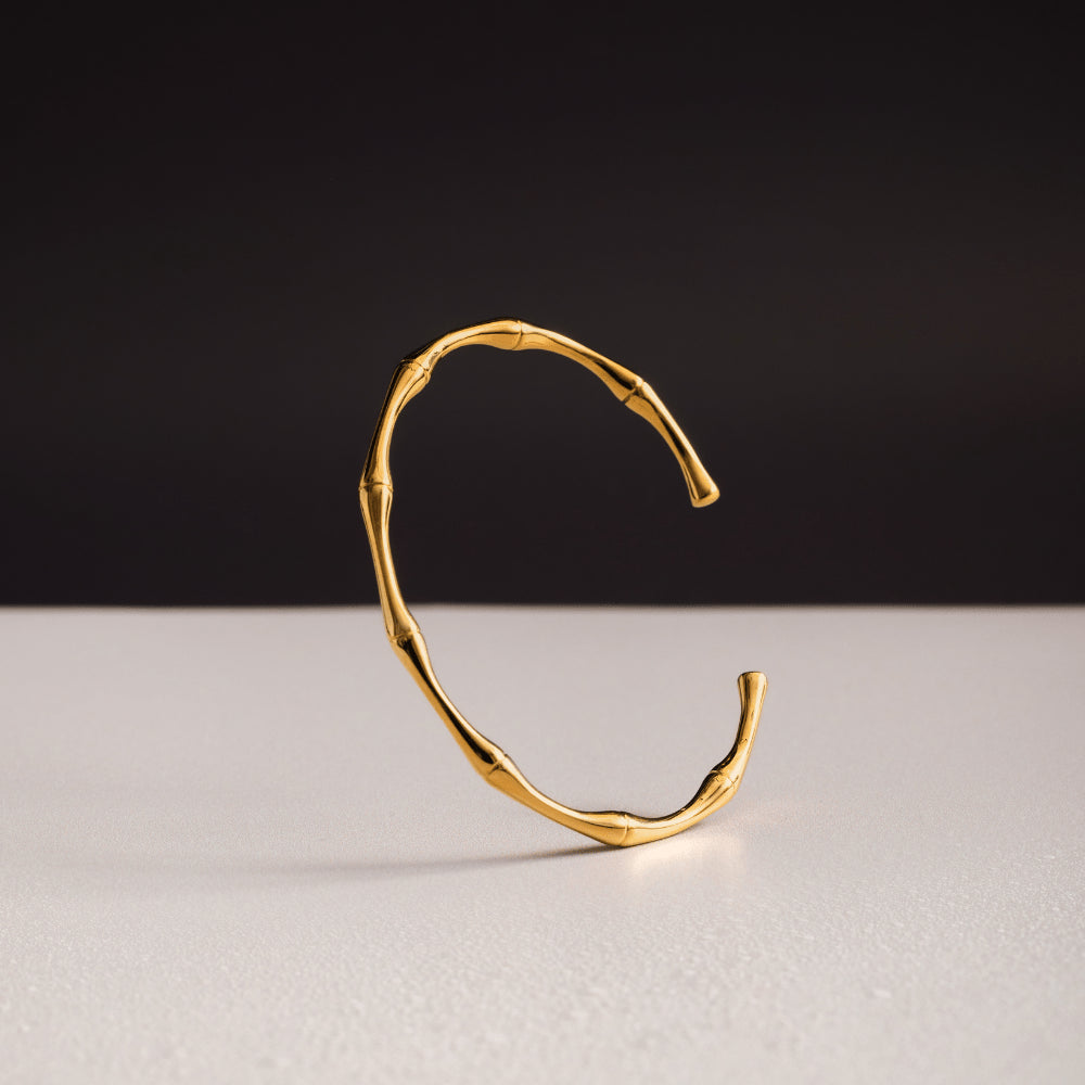 An upgrade of a well-loved favourite. The LUXE Polished Bamboo Open Cuff features a highly polished bamboo texture that wraps the wrist in quiet luxury. Its minimalist silhouette and open design make it effortlessly wearable, whether stacked or worn solo.