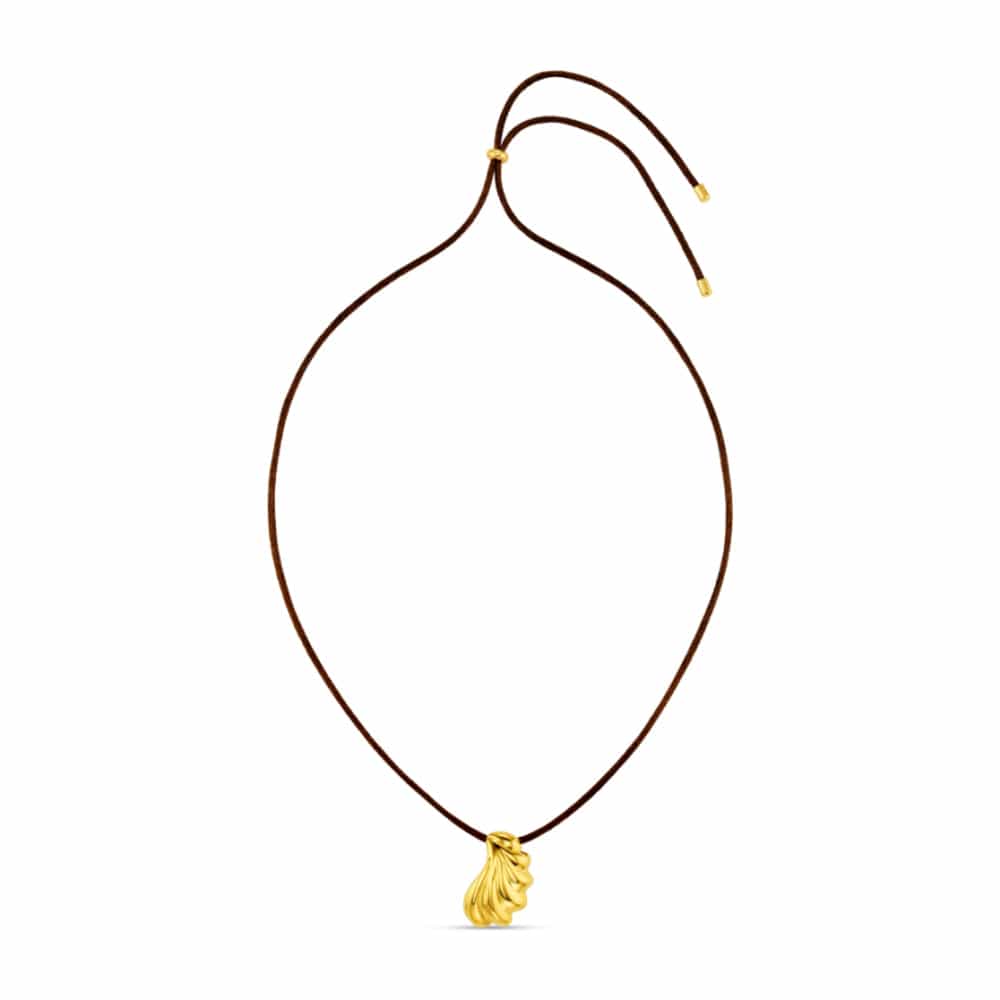 The LUXE Shell Pendant Cord Necklace should be everyone's go-to this season. Easy to style and effortlessly chic, we continue to love this trend. Accenting its warm red/brown adjustable cord, the waterproof, polished gold shell pendant completes any beach-ready look.