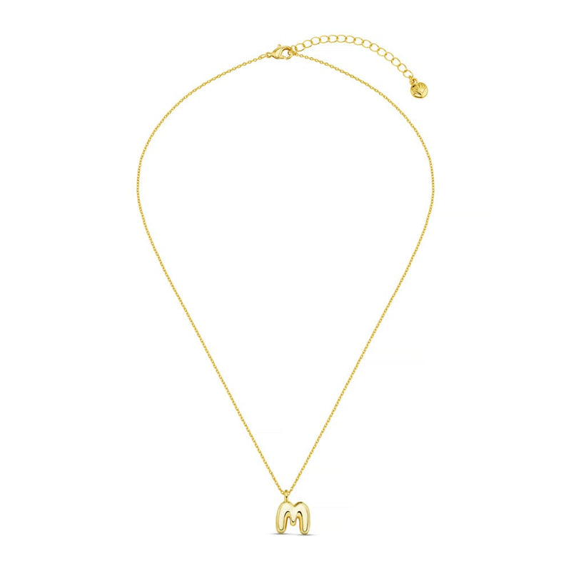 The chunky gold, bubble 'M' initial suspends from a classic chain, creating a minimalist piece that’s perfect for everyday wear or layering with other favourites.