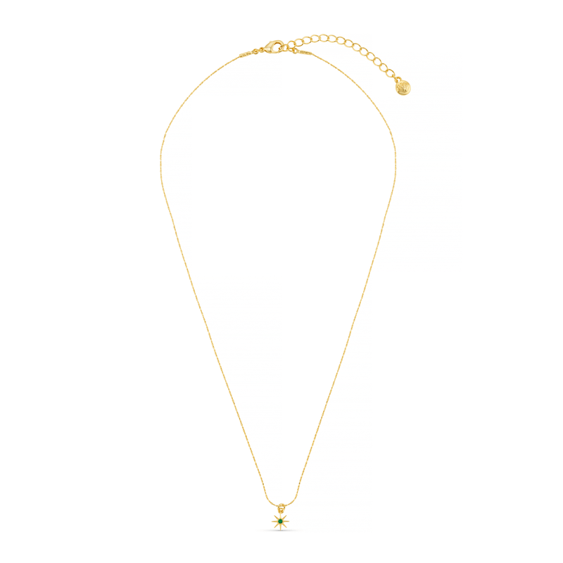 Featuring a classic gold chain necklace holding a small star charm, centred with a gorgeous Emerald crystal.