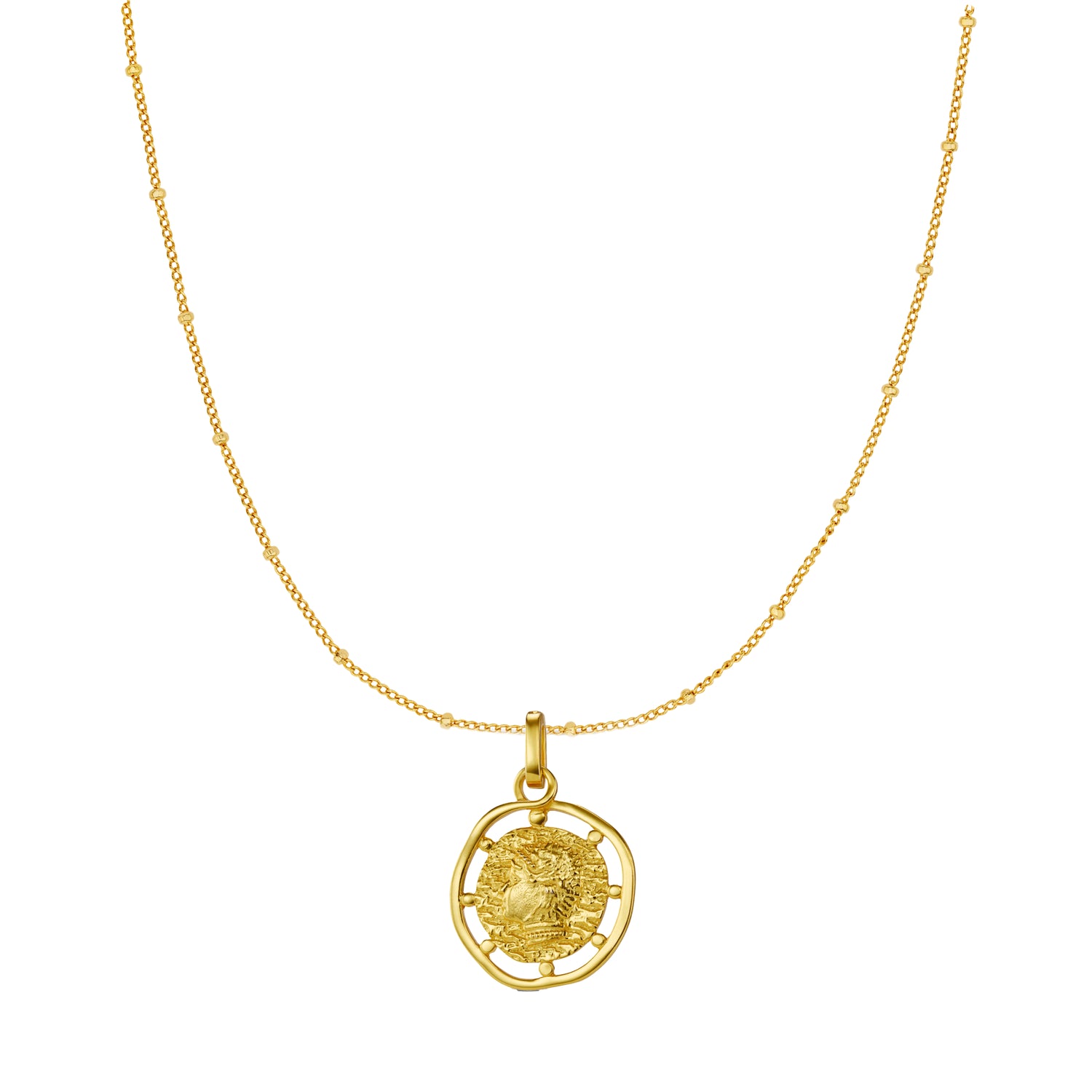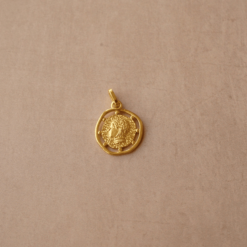 The Medallion Charm Necklace Style Set, features the beautiful LUXE Medallion Coin Charm, paired with a delicate 18k gold plated chain. Perfect for layering, simple but eye catching with a Grecian touch.