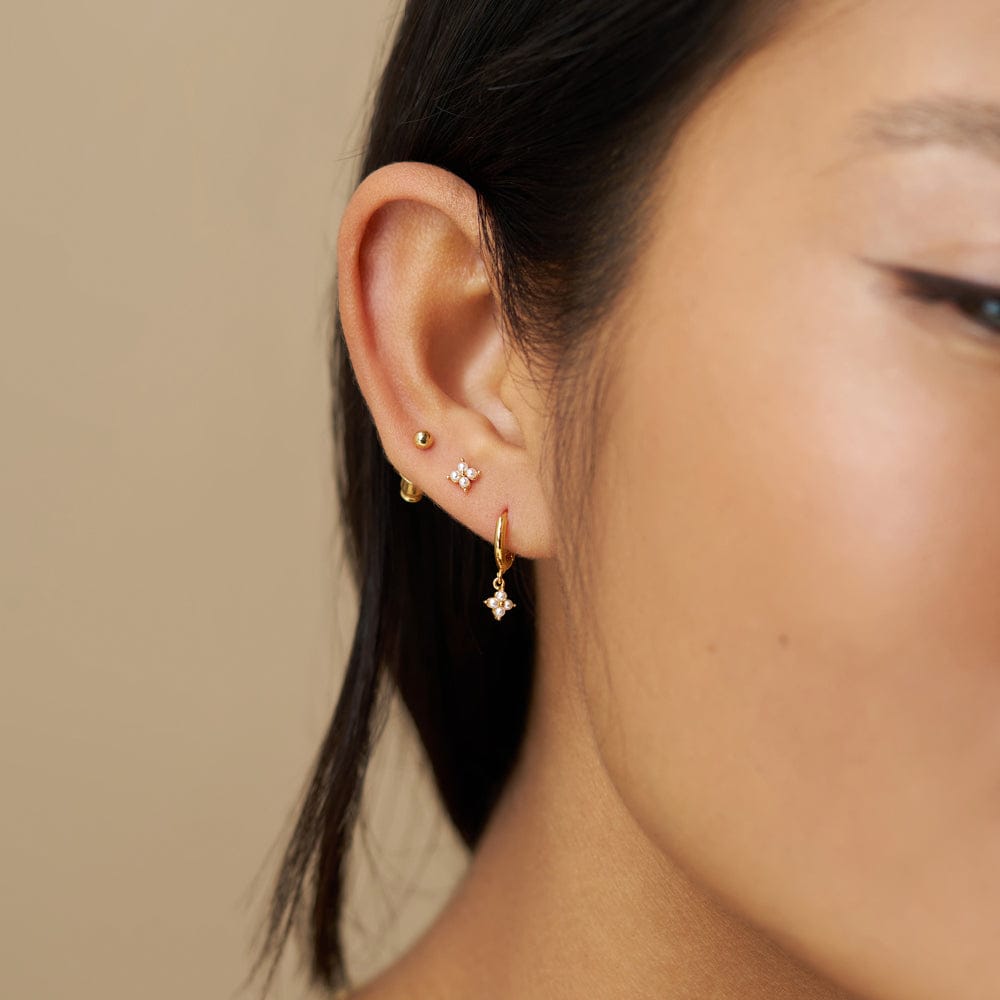 The Micro Floral Pearl Ear Stacking Set features a charming collection of pearl-adorned floral earrings. Designed for mix-and-match styling, it allows you to create elegant, layered ear stacks or wear individual pieces for a subtle, refined look.
